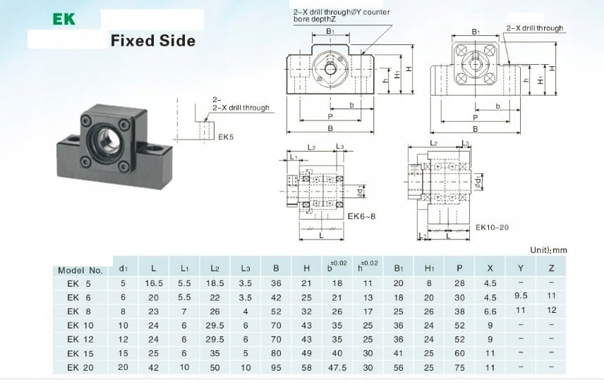 Blok łożyskujący śrubę kulową EK12