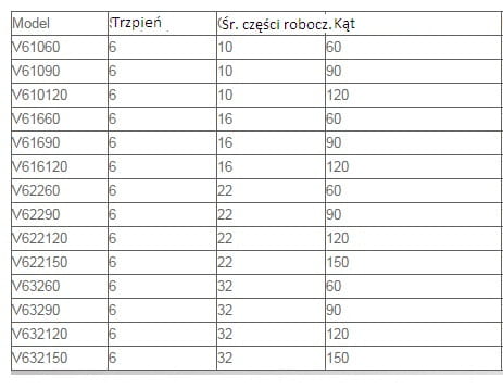 wykaz innych rozmiarów jakie możemy sprowadzić: