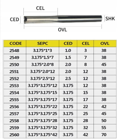 Frez 2p VHM 3,175mm 32mm prosty do drewna