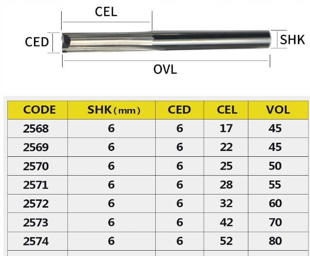 Frez 2p VHM 6,0mm 52mm prosty do drewna