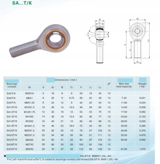 Główka cięgła SA8T/K POS8A GAR8UK z gwintem prawym