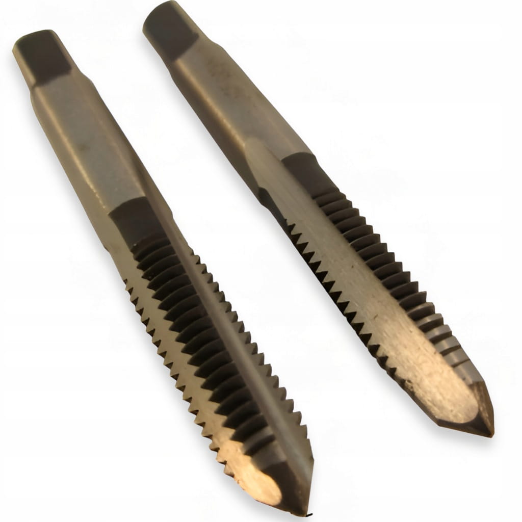 - Wykonanie i Materiał: Zestaw zawiera dwa gwintowniki ręczne, precyzyjnie wykonane z wysokiej jakości stali HSS, co zapewnia ich wytrzymałość i odporność na zużycie.
