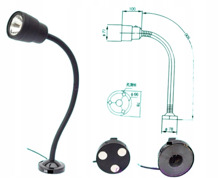 Lampa maszynowa 24V 50W halogen magnes płaski CNC