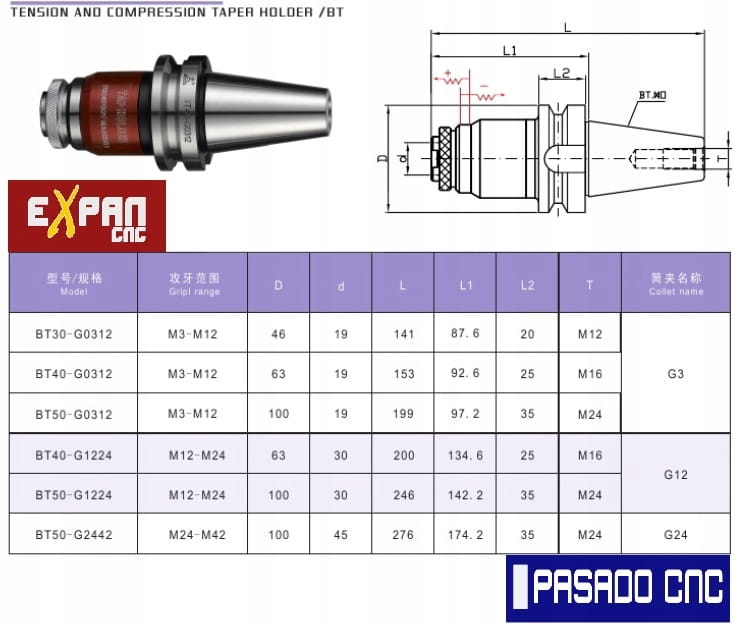 Oprawka BT30 do gwintowników M3-M12 z kompensacja