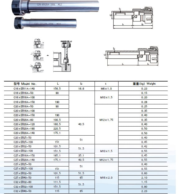 Oprawka zaciskowa C16 ER16 100 do tulejek ER