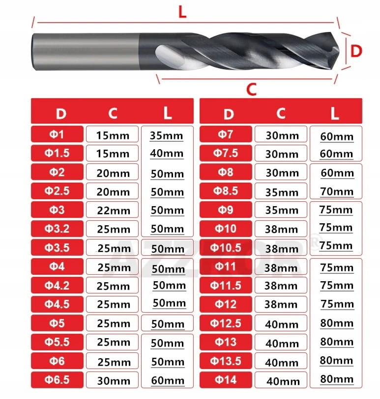Wiertło węglik TiAlN HRC55 5mm