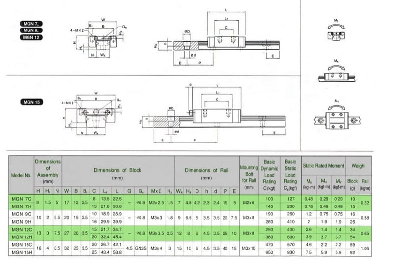 Wózek liniowy prowadnica 600 mm MGN12H MGN12